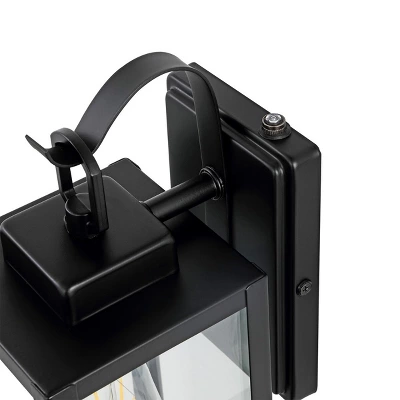 Elevate your outdoor space with the sleek and stylish Clemens outdoor wall sconce set. Featuring a minimalist design, this set of two sconces offers an elegant touch to any exterior. Crafted from durable iron and glass, the sconces boast a matte black finish that complements a variety of outdoor decor styles. With a substantial 6.65 inch size, these wall fixtures not only enhance visibility but also add a touch of sophistication to your home’s exterior.Whether flanking your front door or illuminating your patio, the Clemens sconces provide ample light while maintaining a streamlined look. The combination of metal and glass ensures the fixtures will withstand the elements, bringing a touch of modern elegance to your outdoor gatherings. Easy to install and maintain, this set is the perfect addition to brighten up your evenings and create a welcoming ambiance. Make a statement with the modern design of the Clemens outdoor wall sconce set and transform your exterior into a stylish retreat.