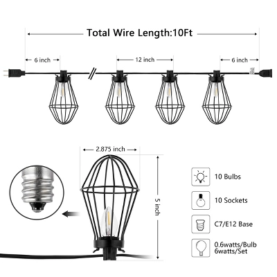 - Wire Lengh 120 inches, with 10 Lights, spaced 12 inches apart
