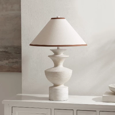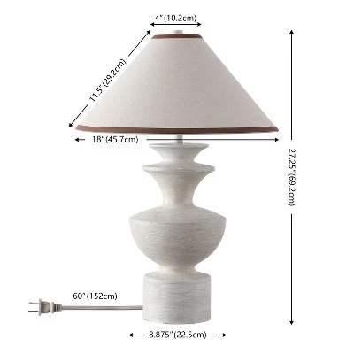 Illuminate your space with the charming ESME 27 inch antique white resin table lamp. This elegant piece features a finely crafted resin body that complements any interior decor. Paired with a sophisticated fabric shade, the lamp offers a warm and inviting glow that transforms any room into a cozy retreat. Its antique white finish adds a touch of classic elegance, making it a versatile addition to your living space, bedroom, or office. Whether placed on a bedside table or a desk, ESME enhances your decor with a timeless appeal. Let your surroundings shine with style and grace through this beautifully crafted table lamp.