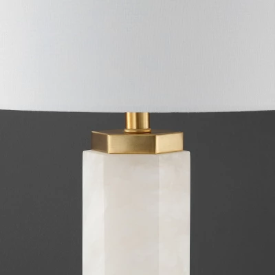 - Accent Table Lamp crafted with Alabaster, Iron, Cotton