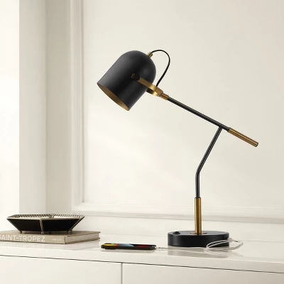 Illuminate your space with the Mulaney table lamp, a fusion of style and functionality. Standing at 22 inches, this striking lamp combines black and brass accents, adding an elegant touch to any room. Crafted from iron, its sleek design complements both modern and classic decor. The addition of a USB port elevates its practicality, making it perfect for busy lifestyles. Ideal for your living room, bedroom, or office, this lamp provides perfect lighting while keeping your devices charged. Elevate your decor with the Mulaney table lamp, where style meets utility.