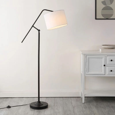 Illuminate your space with the newbrook 62.5 inch black iron floor lamp. Crafted with sleek black iron, this floor lamp exudes modern elegance and seamlessly complements any home decor. Its cotton shade provides a soft, inviting glow that enhances the ambiance of your living room, bedroom, or office. The newbrook floor lamp stands tall at 62.5 inches, offering the perfect blend of style and functionality. Whether you are reading, relaxing, or working, this lamp delivers the illumination you need with a touch of sophistication. Transform your space with this chic and versatile lighting solution that adds an attractive focal point to any room. Discover the perfect balance of form and function with the newbrook black iron floor lamp.
