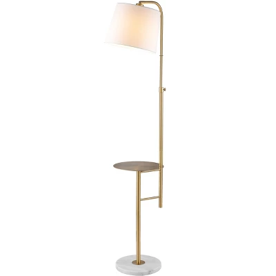 Illuminate your space with the Sorsi floor lamp, an elegant blend of sophistication and practicality. Standing between 56.5 to 64.5 inches, this lamp features a captivating gold finish that adds a touch of luxury to any decor. Constructed from iron and marble, its design marries durability with a refined aesthetic. The graceful structure and sleek lines make it an ideal accent for living rooms, bedrooms, or offices. Whether you seek ambient lighting or a statement piece, Sorsi delivers with style. Embrace the warmth and allure of this exquisite floor lamp and elevate your interior experience.