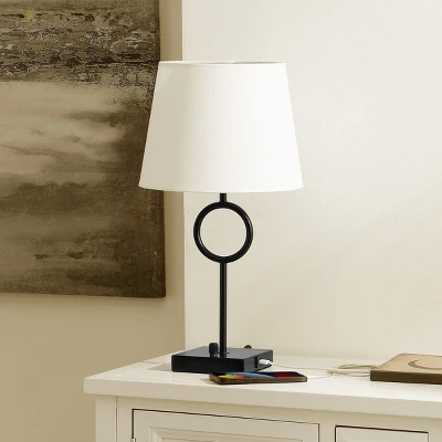 Introducing the VYNN 19 inch black iron table lamp, where functional design meets modern elegance. This sleek black lamp complements any room with its minimalist style. Crafted from iron, the lamp offers a sturdy and elegant presence, enhancing your space effortlessly. Standing 19 inches tall, it provides ample lighting for work or relaxation, creating an inviting atmosphere. A convenient USB port integrated into the lamp base makes charging your devices easy, combining technology with style. Whether placed on an office desk or a living room table, this lamp suits various settings with its timeless design. Illuminate your surroundings with the VYNN table lamp, an ideal choice for those who value simplicity and functionality. Elevate your space with this practical and beautiful lighting solution.